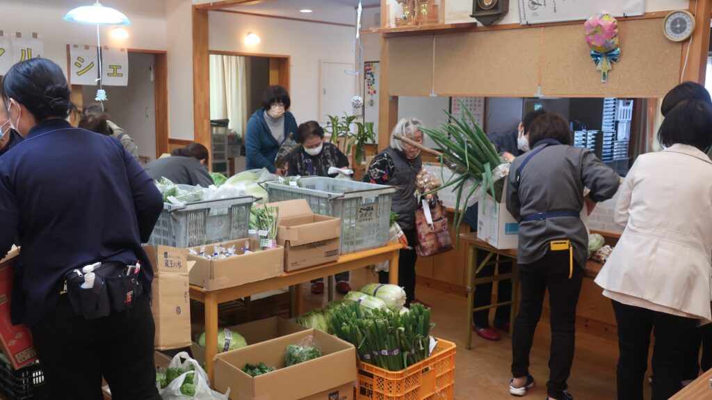 03光栄荘介護予防マルシェを開催しました2025.11.1711月15日(土)、特別養護老人ホーム光栄荘では、第6回目の介護予防マルシェを開催しました。野菜を中心に33名の方に出品いただき、120名もの来場者でとてもにぎわいました。野菜は、地域の高齢者が愛情をこめて作ったものです。1個100円~と大変お安く、数千円もお買い上げいただく方もいらっしゃいました。アンケートにお答えただいた方には、焼き芋がふるまわれ秋の味覚も楽しんでいただきました。収益は全額出品者に還元しています。これからも畑仕事や趣味活動を元気に続けていただくよう願っています。 Post Share LINE note この記事のタイトルとURLをコピーする 藤沢地域産業福祉文化祭に初出展しました前の記事 地域医療研修報告会を開催しました次の記事