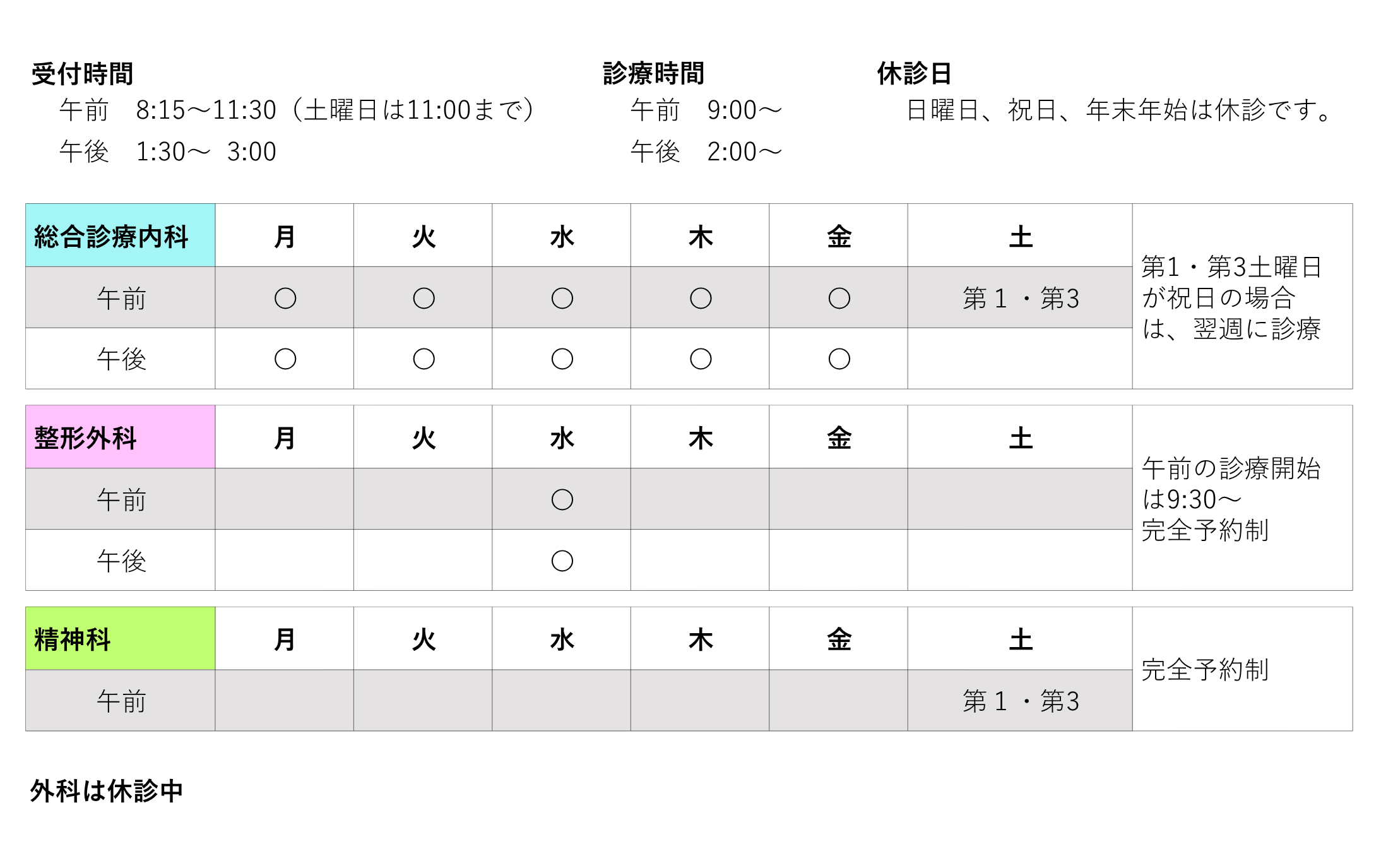 自治医科大学精神医学教室からの派遣などにより第1と第3土曜日に診療を行っています。