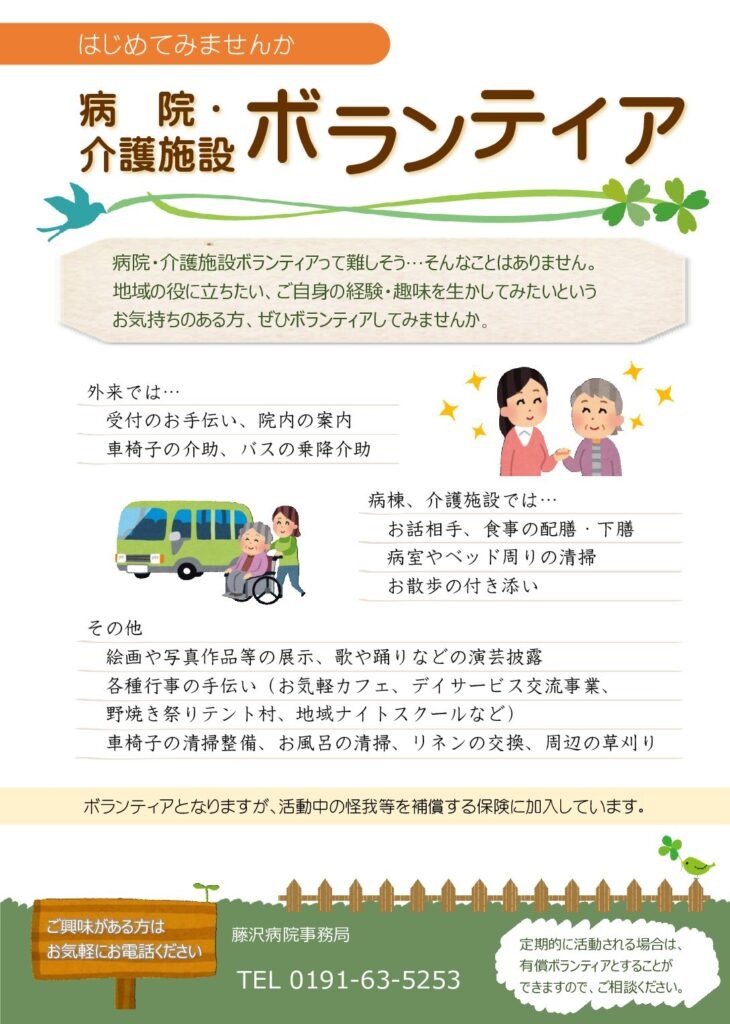 一関市国民健康保険藤沢病院事務局(電話0191-63-5253)までお願いします。